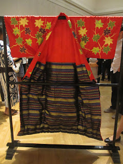 Anyone who is a fiber artist, especially those who sew, weave, and embroider should check out the uchikake before it goes into storage. I might have to go back to take another look. The gallery was quite crowded and there was a lot going on with the protest and counterprotest so I didn't realize until I got home that I'd mostly been looking and thinking about the uchikake in terms of what pictures I needed for the blog, not from a fiber arts perspective. About the only thing I managed to note on that front was the variety of Japanese embroidery techniques used and the quality of the work.
